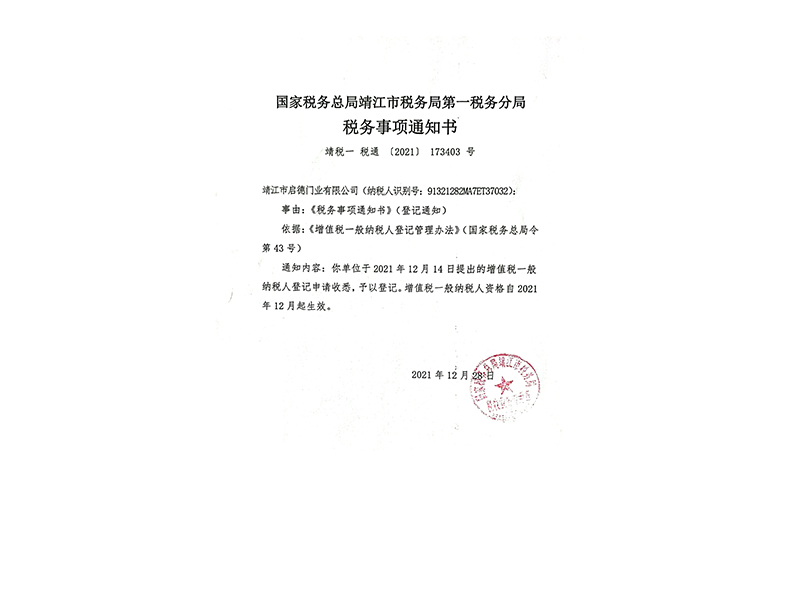 • 稅務事項通知書